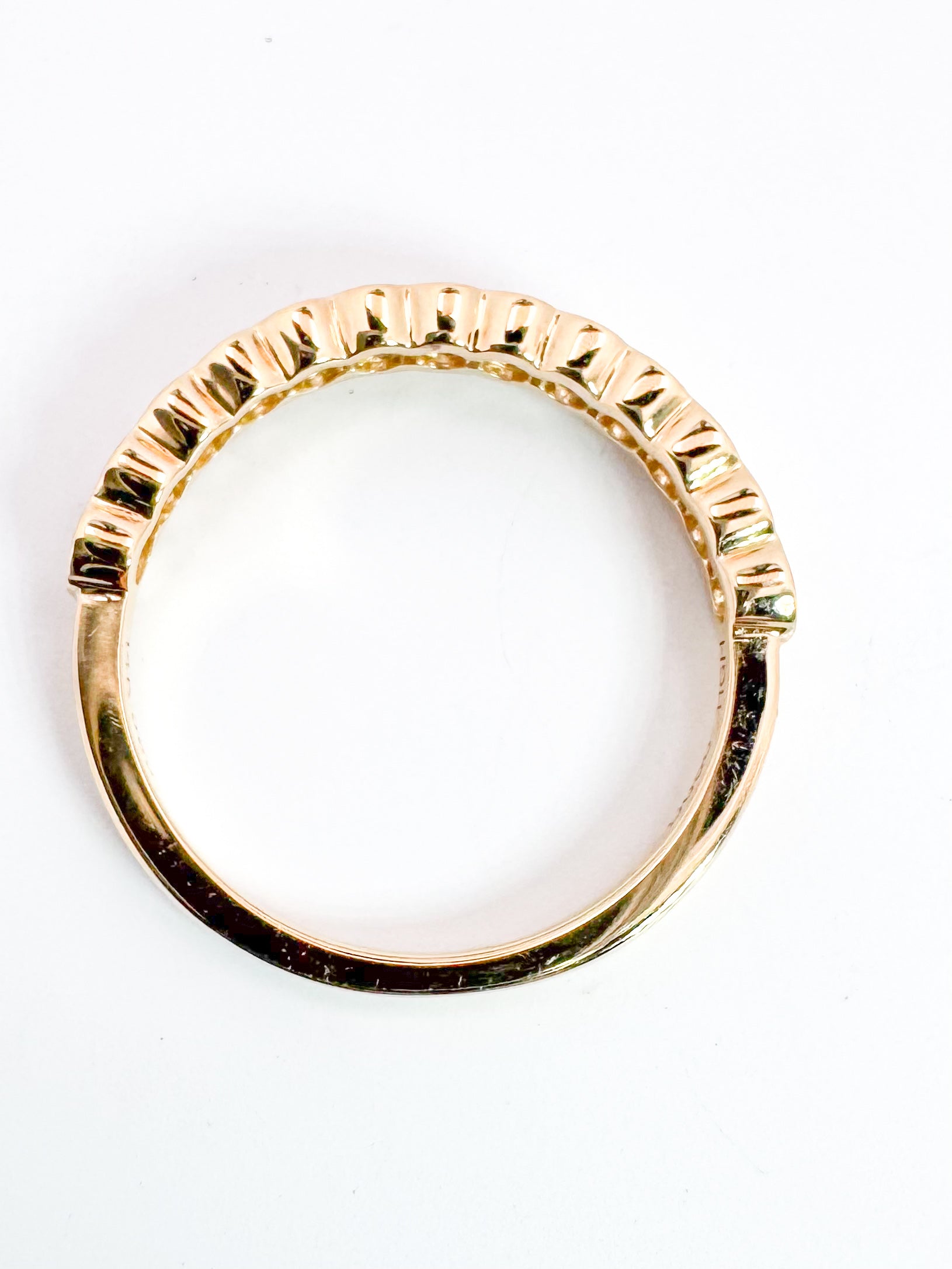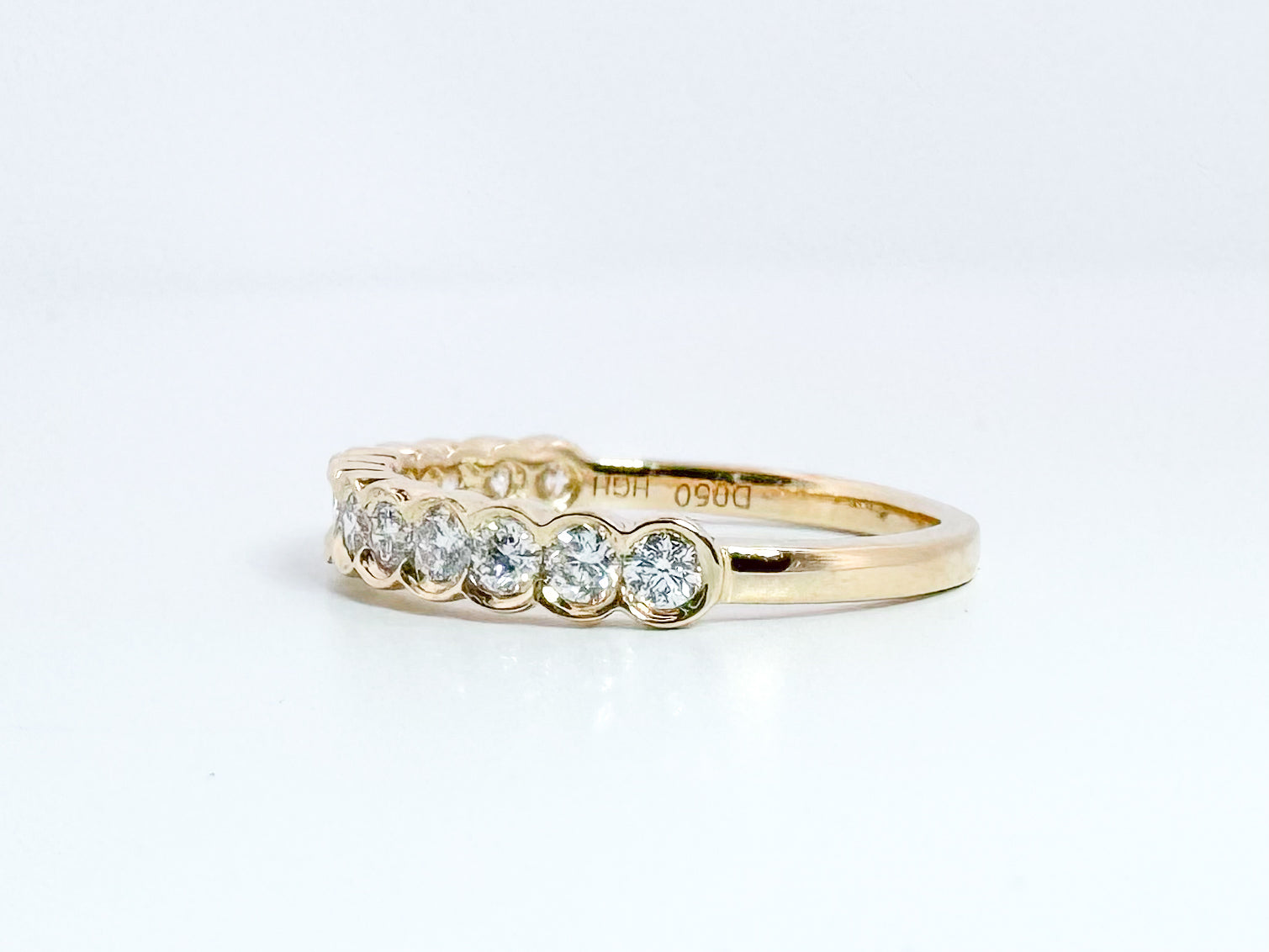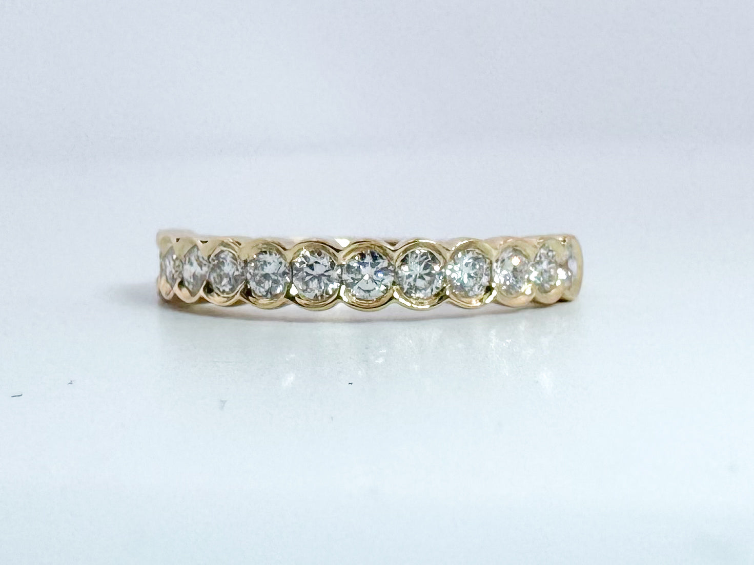 14k, Yellow gold .50 dtw half bezel diamond band.