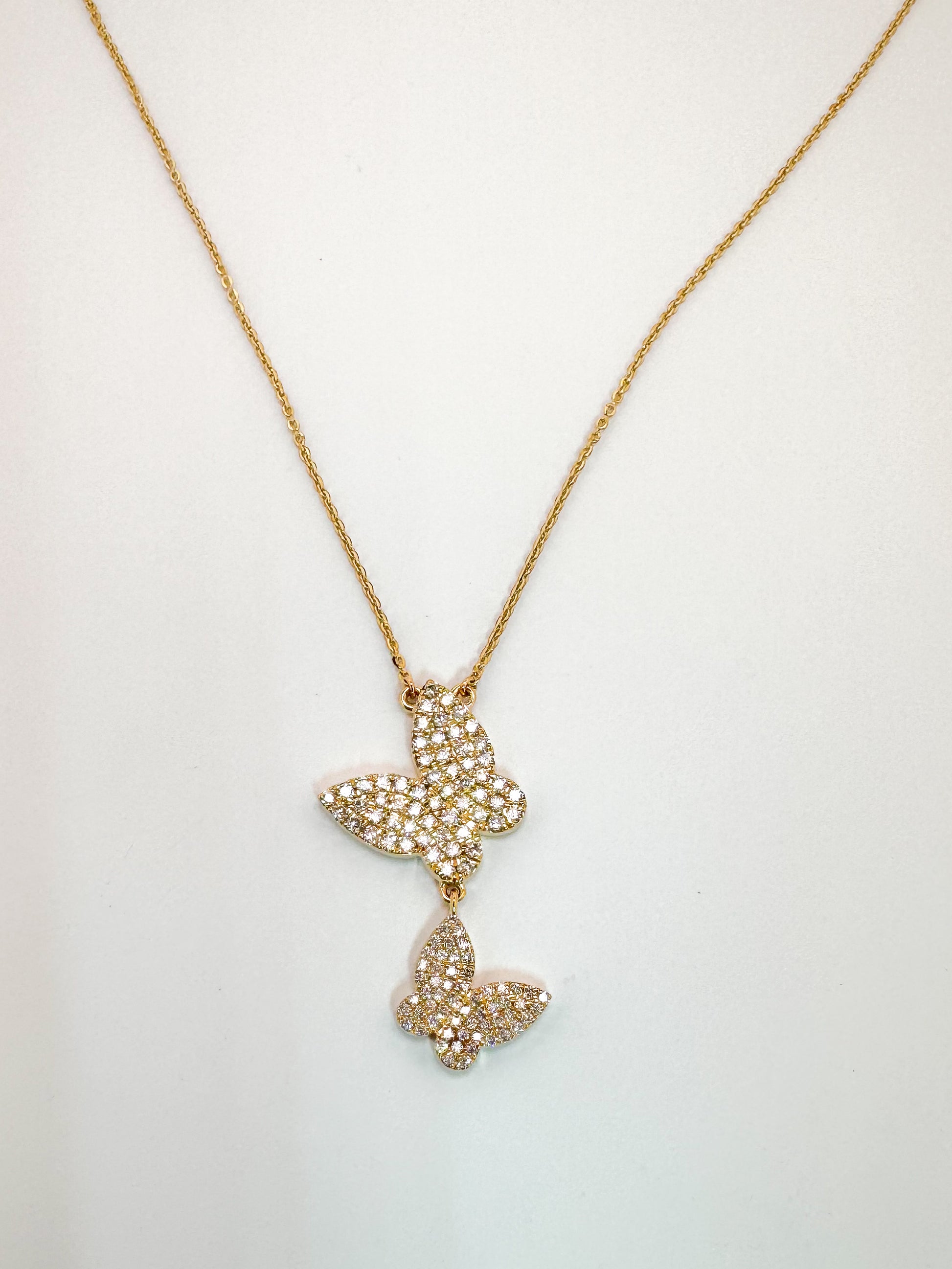 14K, Yellow gold, .78 diamond total weight, double butterfly necklace.