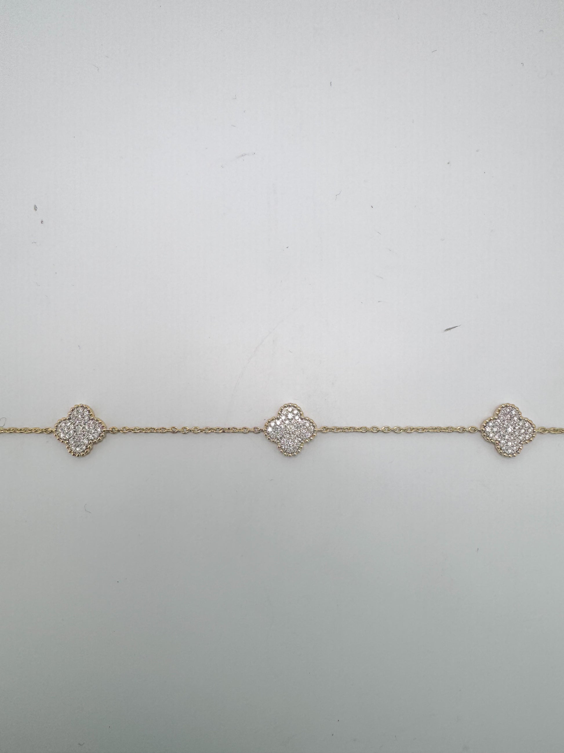 14K, yellow gold, Alahambra, diamond bracelet. .35 carats total weight.