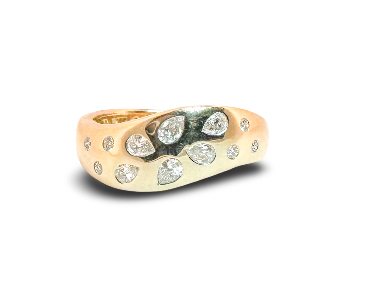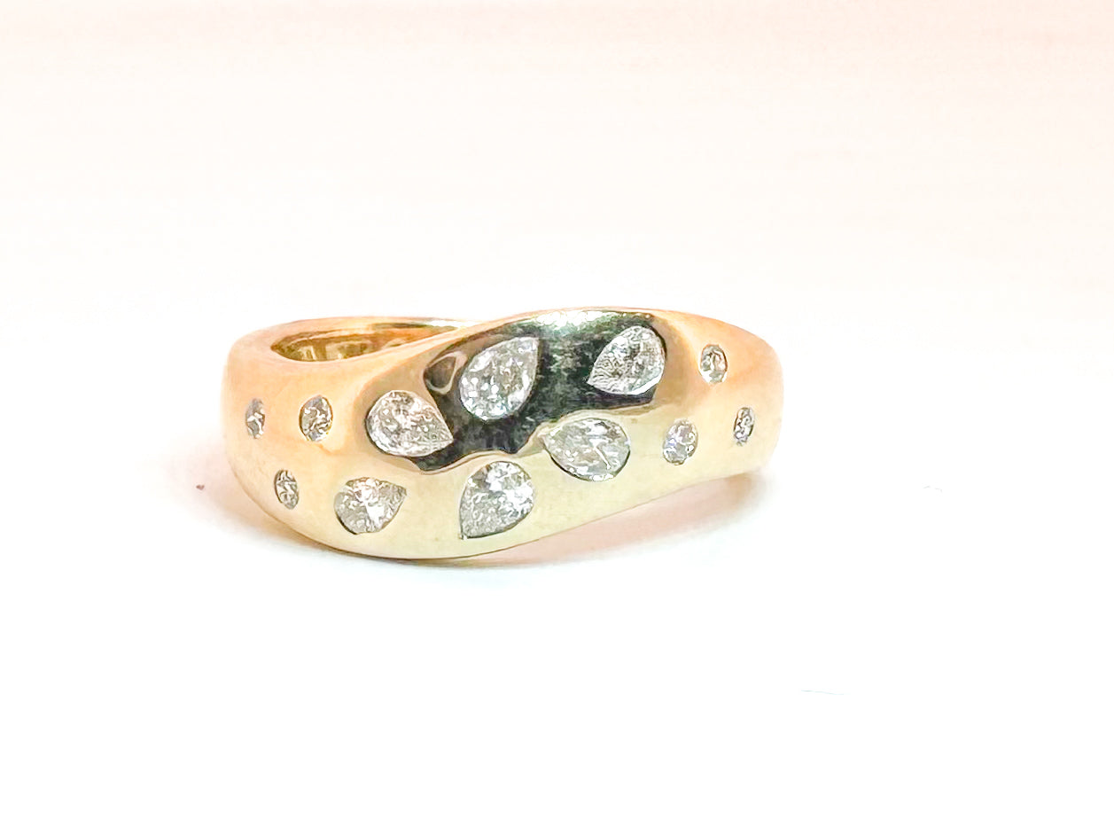 14K, yellow gold flush set .45 carat total weight diamond fashion ring.