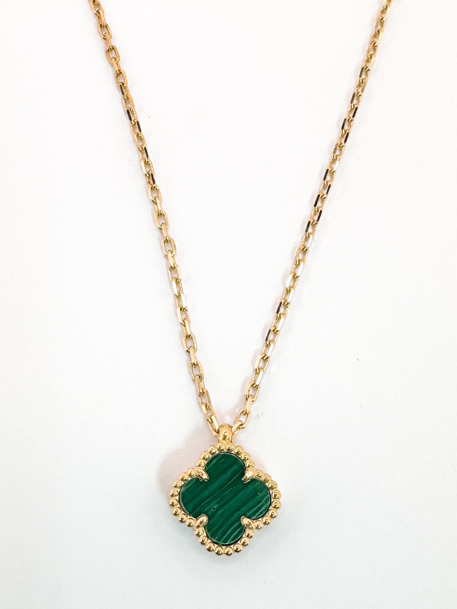 14k, Yellow gold, malchite alhambra, double sided necklace