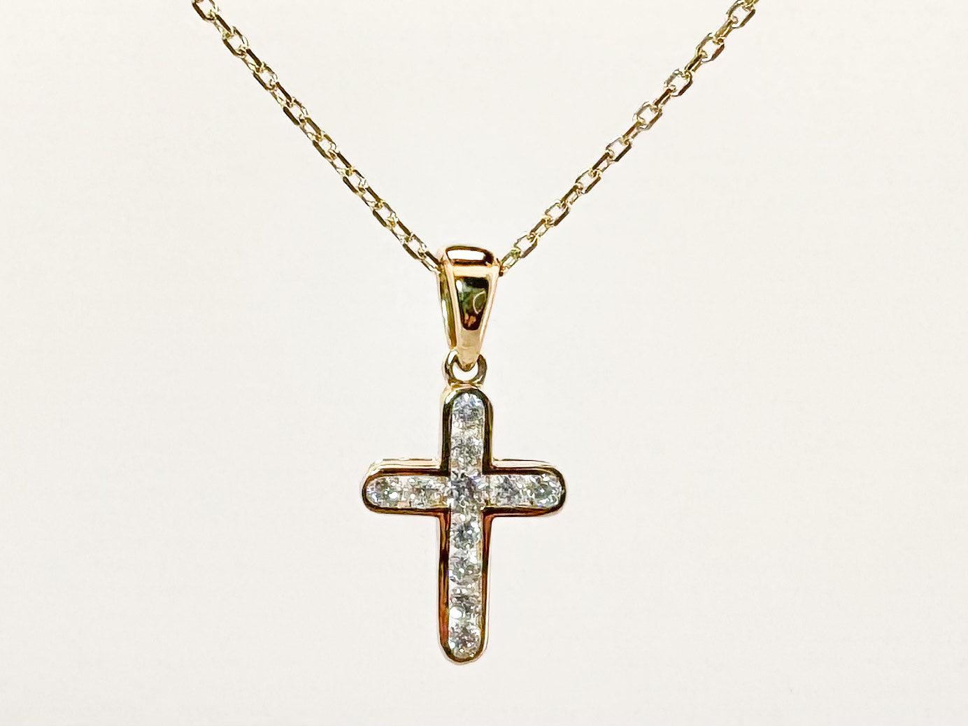 14k, yellow gold natural diamond cross. .29 carat total weight.