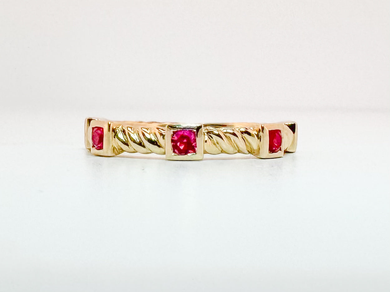 14K, yellow gold, rope, Ruby band. .40 carat total weight