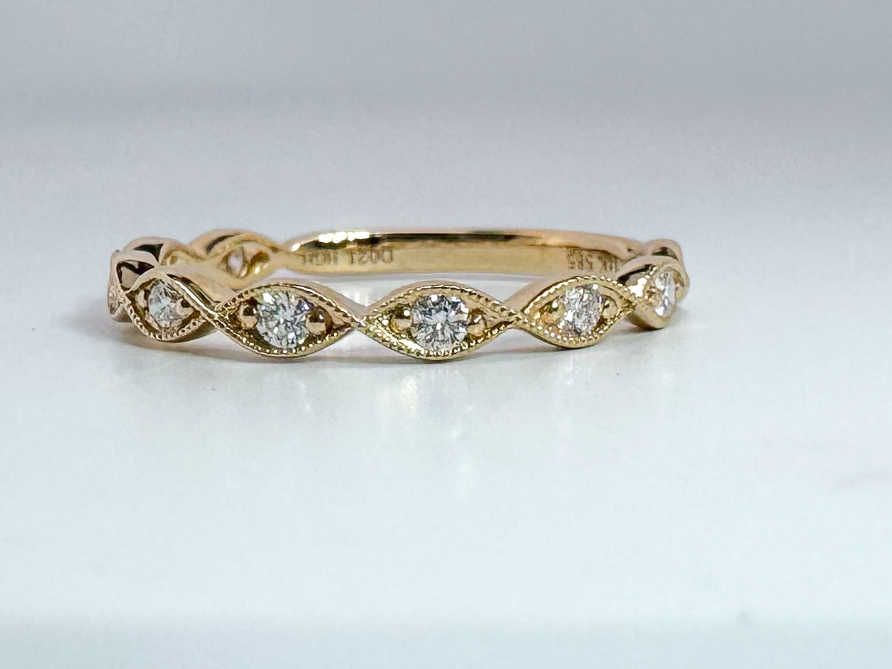 14k, yellow gold scalloped .21 carat, natural diamond band.