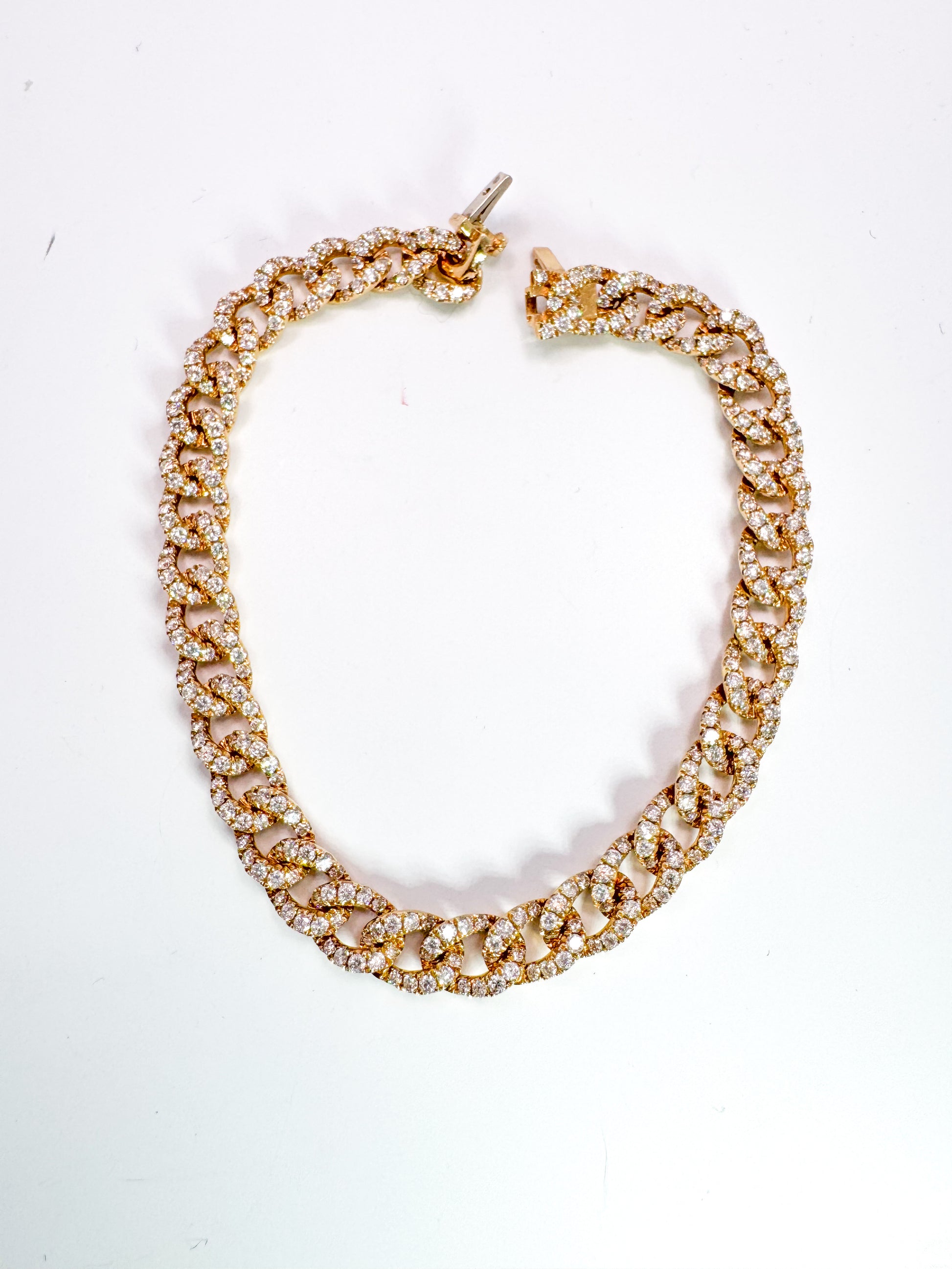 14KY 3.73 carat total weight of natural diamonds. Cuban link bracelet.