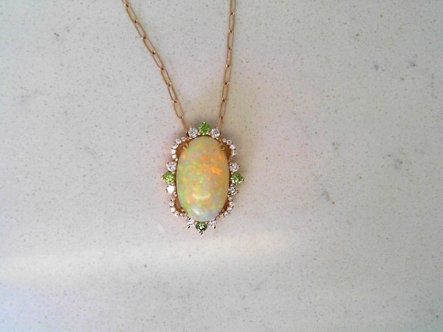 .44ctw green diamonds, .64ctw white diamonds set around a 13.90ct Australian Opal