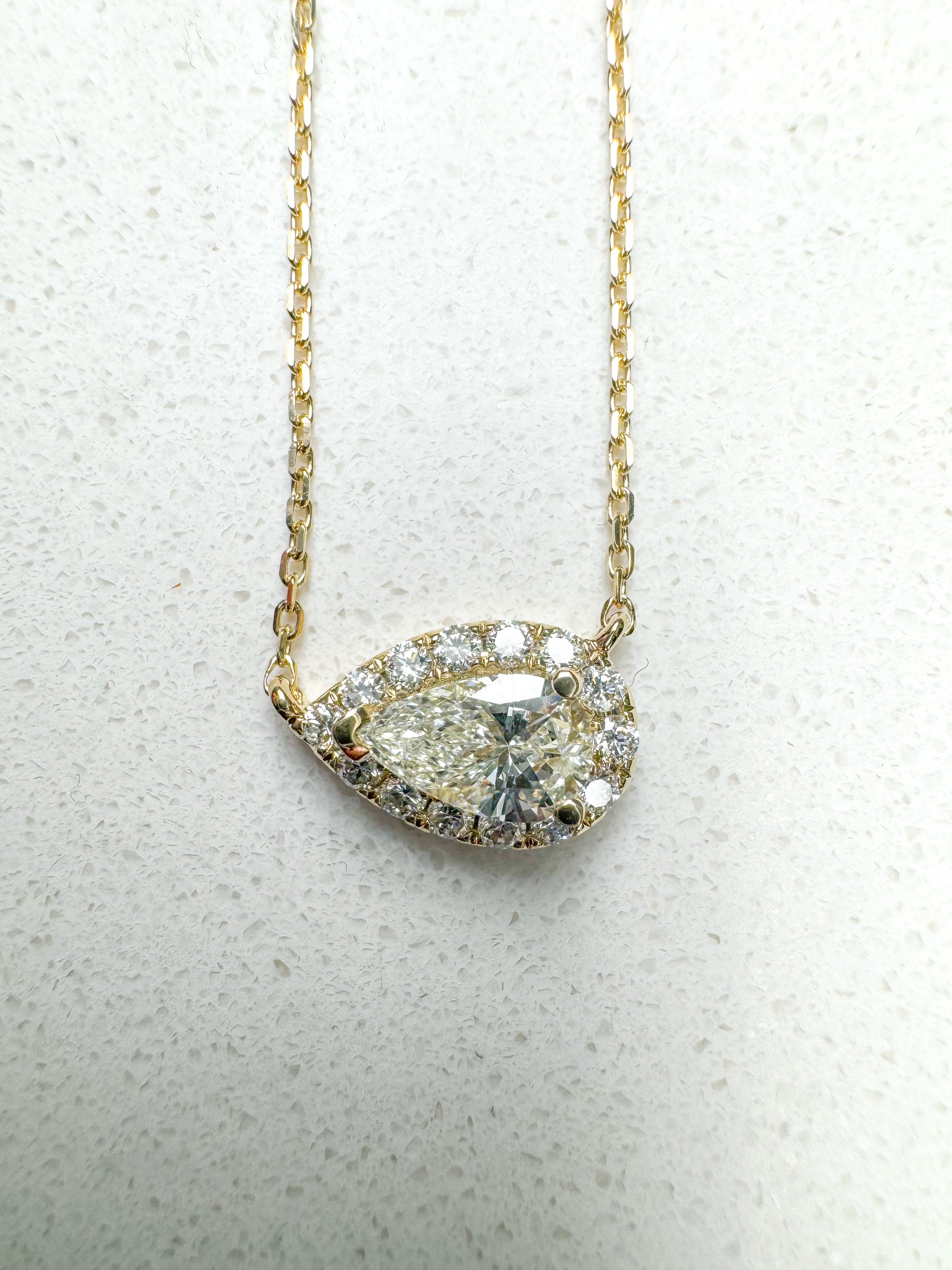 .73ct Pear Shaped diamond set in a halo diamonds with .22ctw of additional diamonds