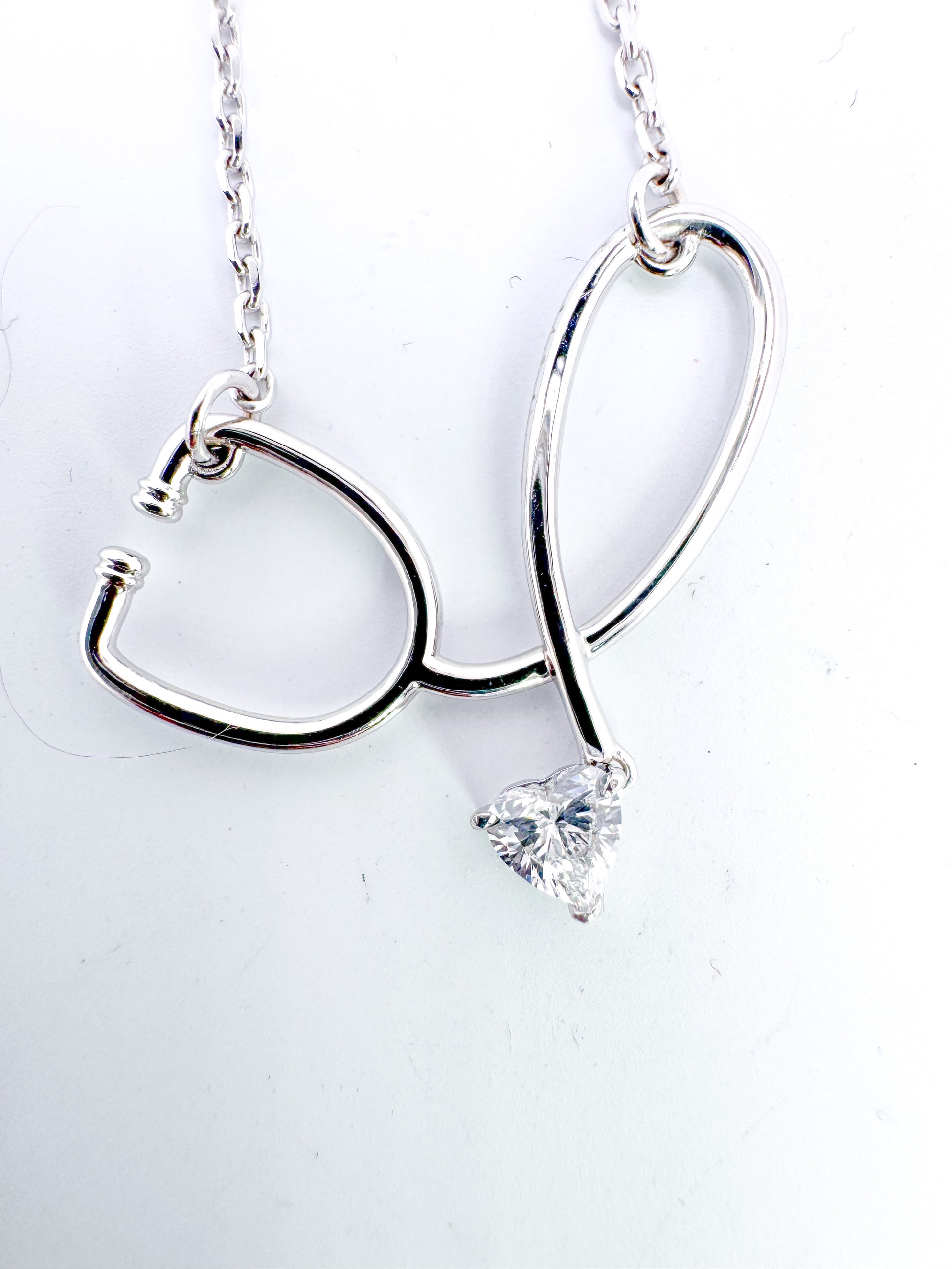 Custom Stethoscope Pendant with .22 heart shaped lab grown diamond