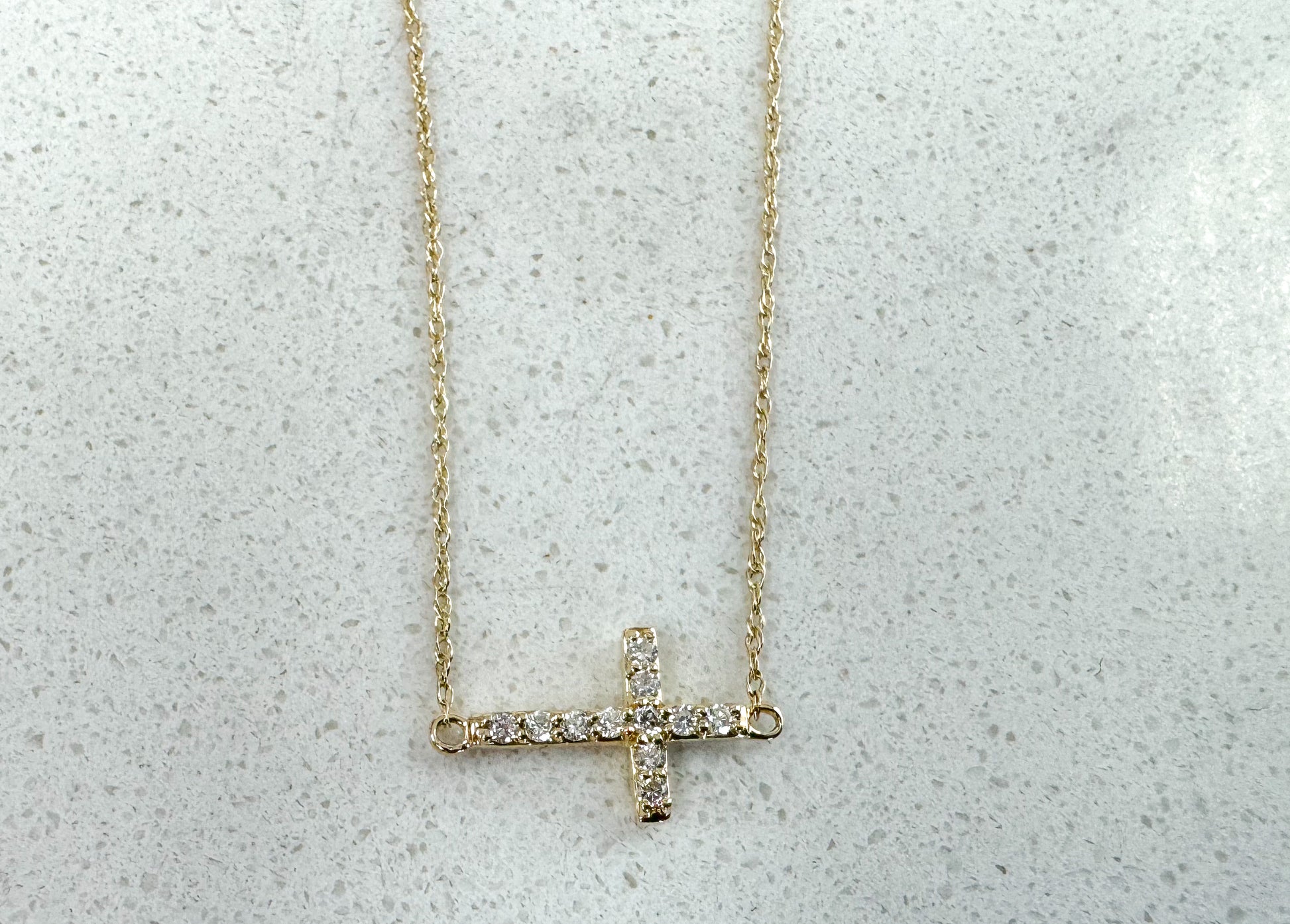 .09ctw sideways diamond cross. The cross measures 1/2" long by 3/8" long.