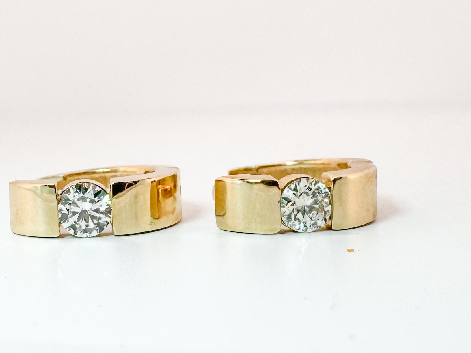 14k, Yellow gold .83 diamond total weight, squared off, diamond hoop.