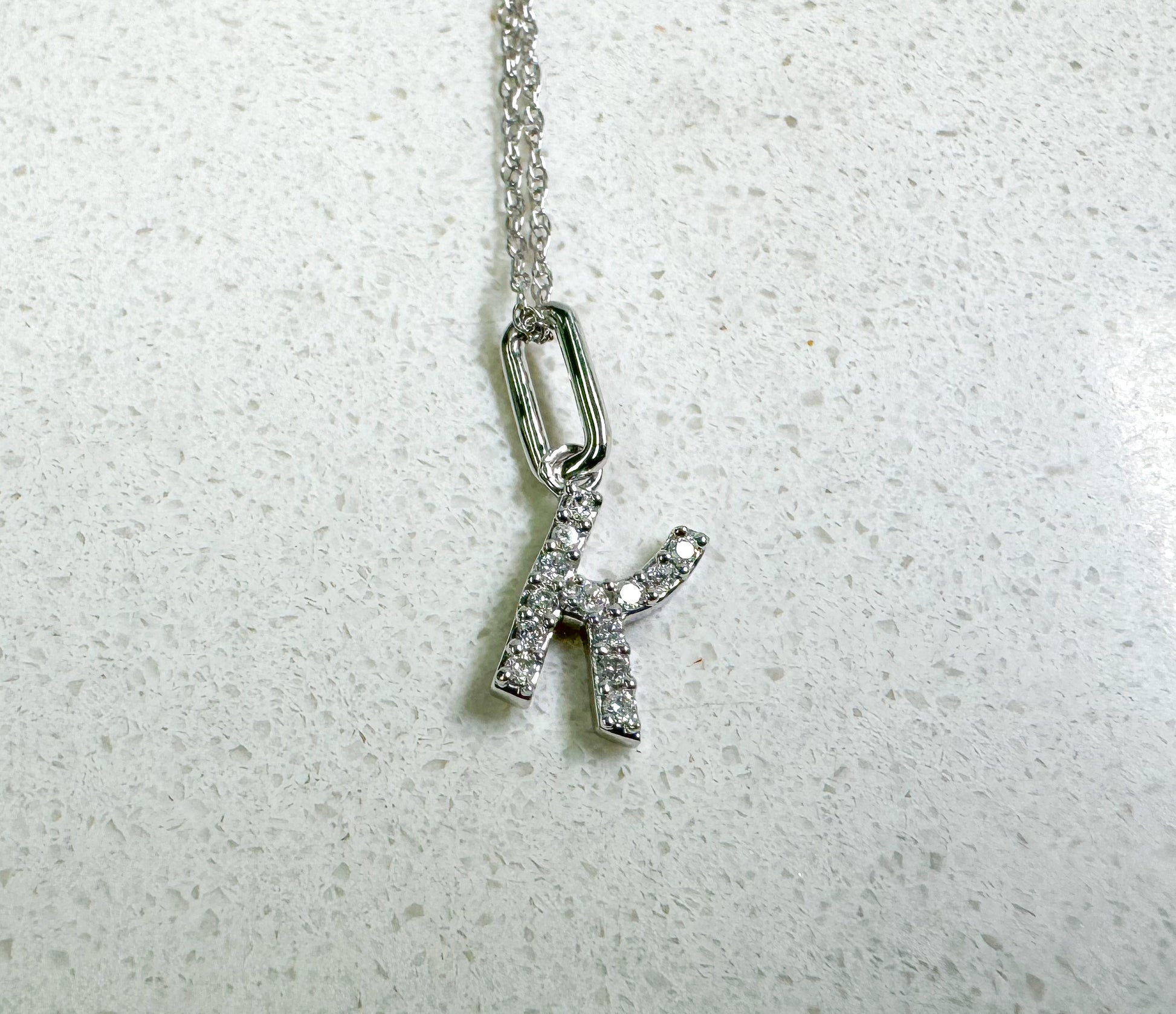 .05ctw diamond "K" pendant. The initial is 3/8" long.