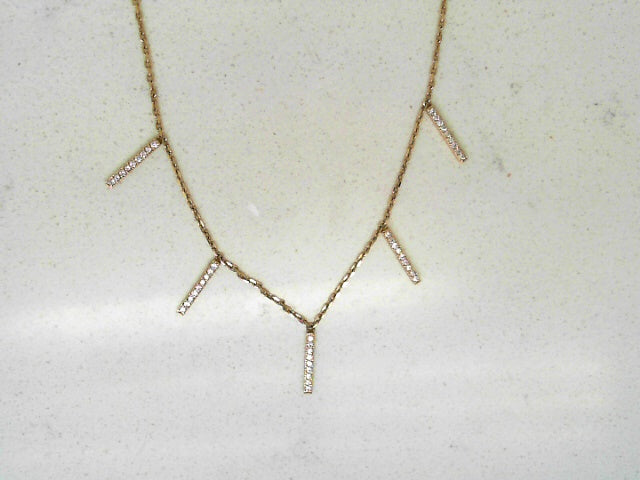Five diamond bars containing .29ctw of diamonds dangling from a gold necklace.