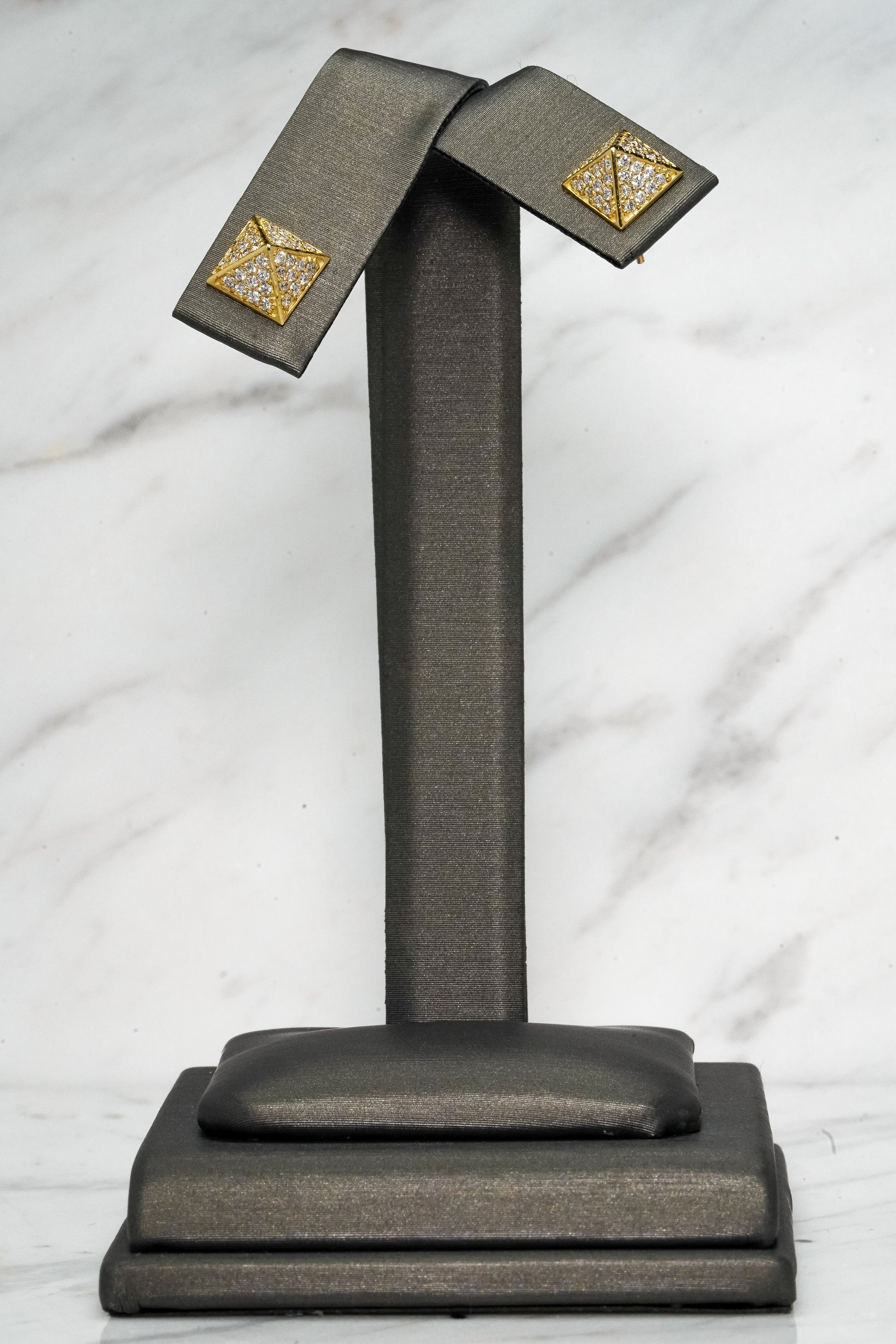 14-karat yellow gold pyramid diamond earrings covered in beautiful .48-carat total weight diamonds.