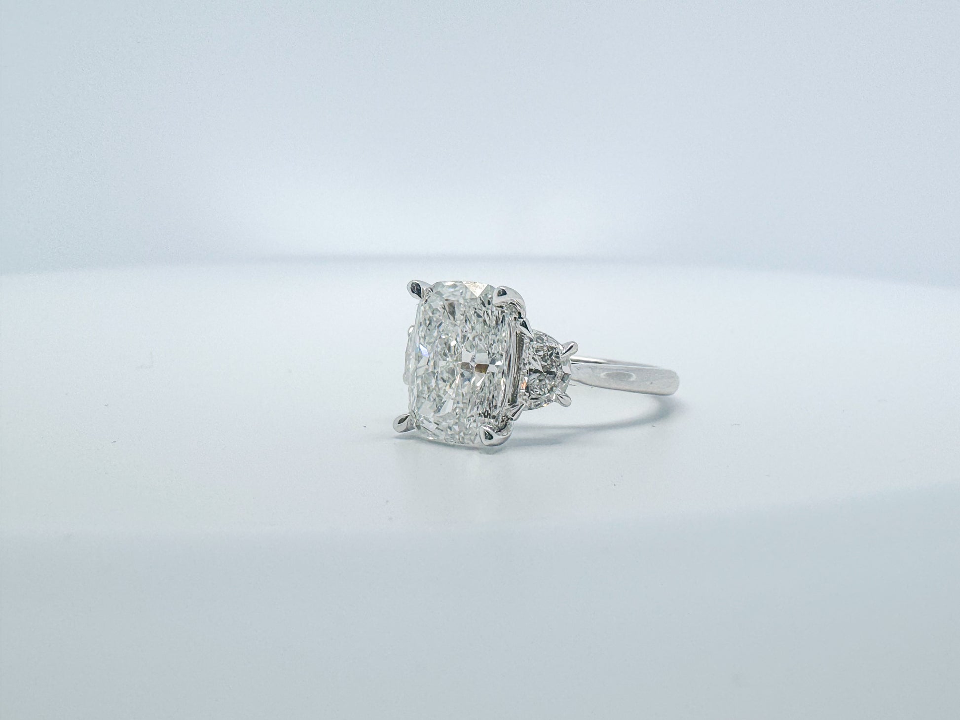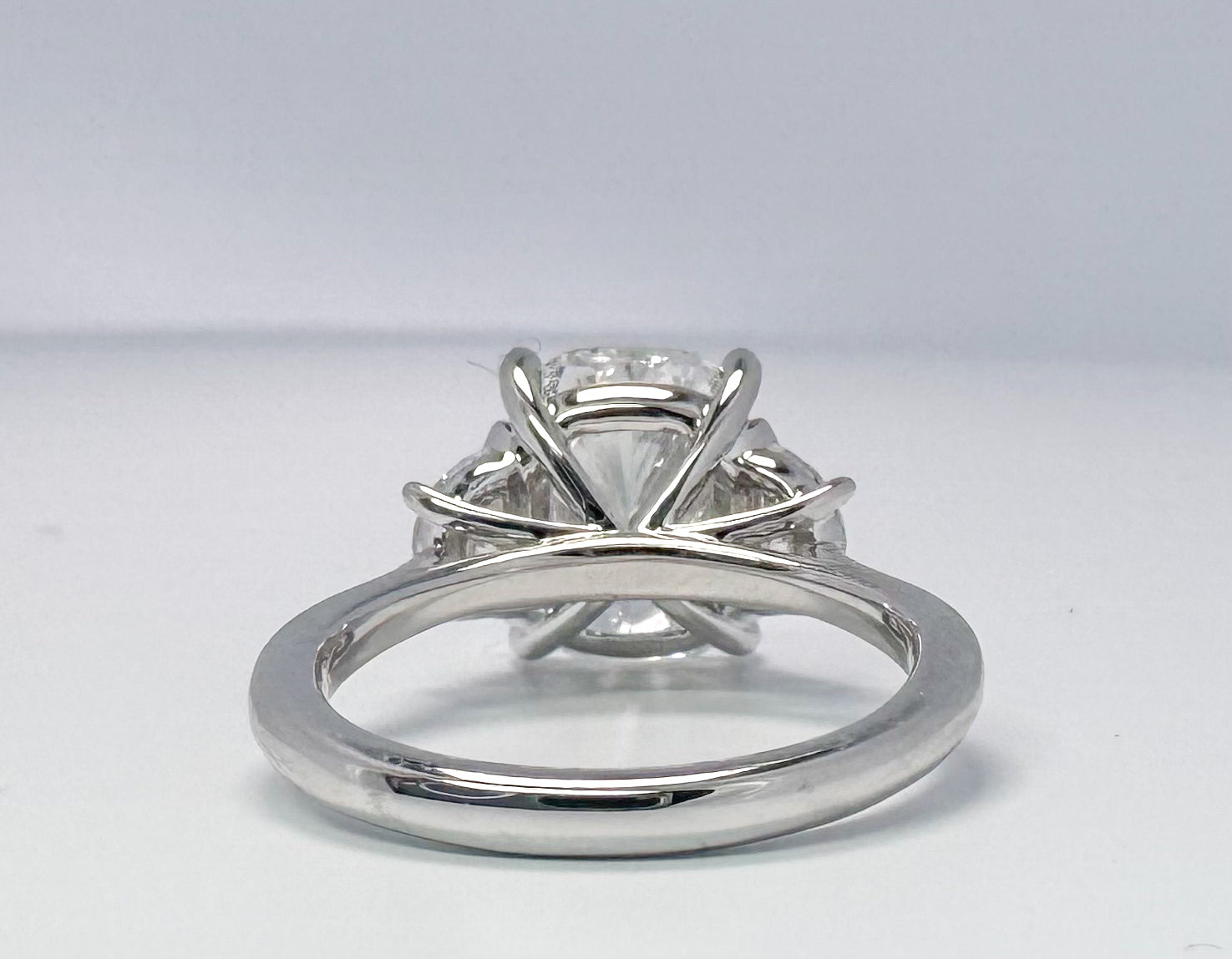 Lab grown diamond engagement ring 4.15 ct cushion center with Half moon side diamonds