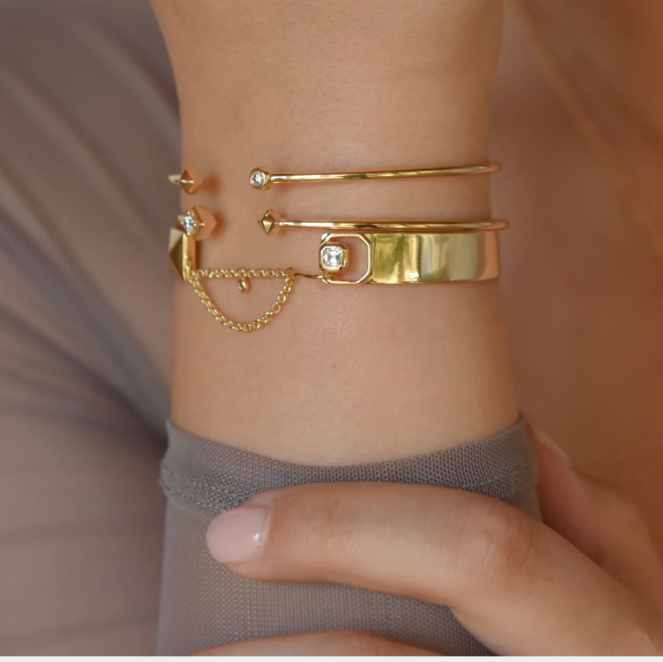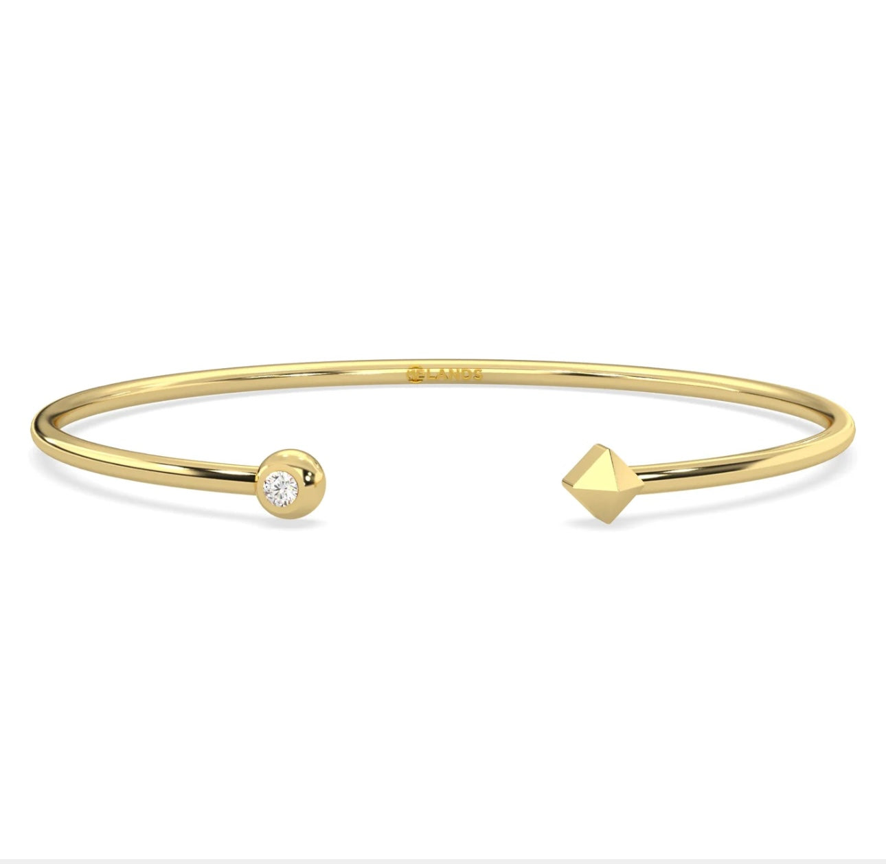 Adorned with an edgy pyramid design and a diamond, this cuff bracelet embodies the fearless spirit of adventure. Its yellow modern electrum setting pays homage to the boldness of the Ekati diamond mine's origins.