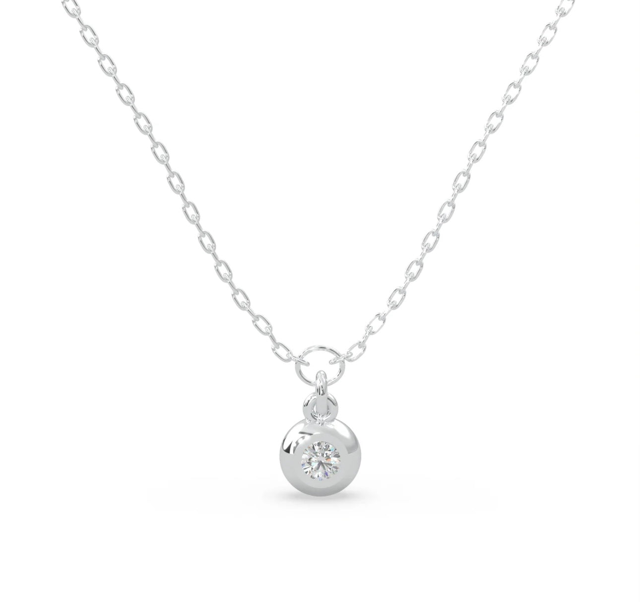 Suspended on a 20” adjustable chain, this pendant holds a diamond that's embodying the timeless allure of romance and adventure. Crafted in white modern electrum, it echoes the purity and clarity of love's journey.