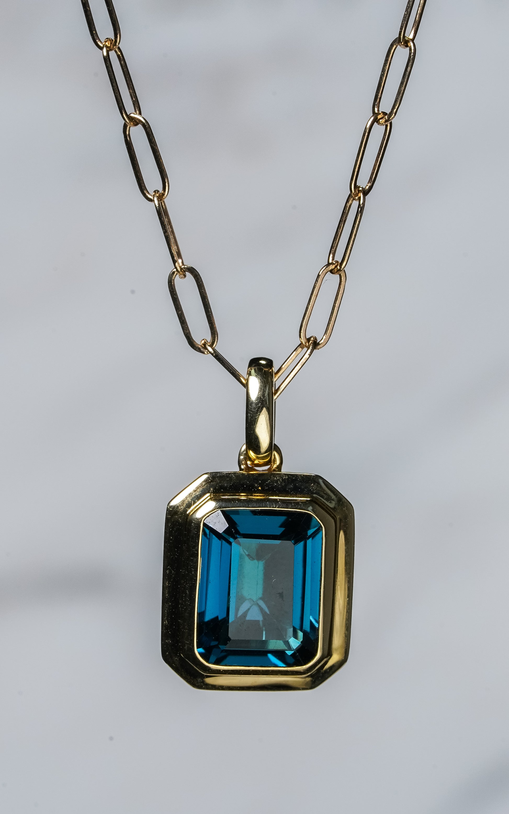 2.25CT LOND BLUE TOPAZ PENDANT, PAPERCLIP CHAIN 14KY
