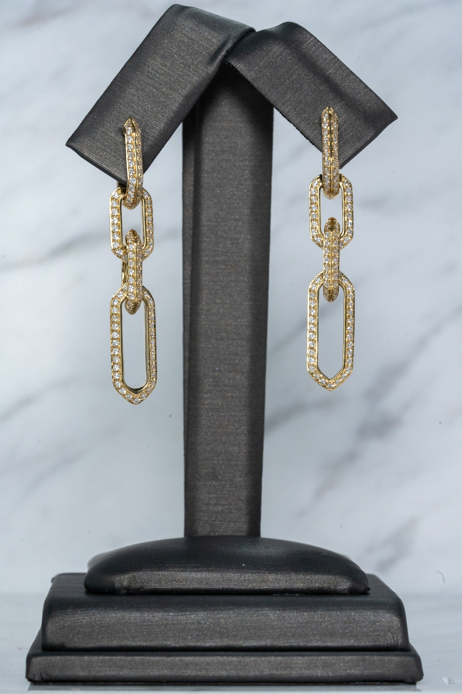 A pair of stunning 14k yellow gold paper clip earrings. 1.19-carat total weight diamonds pave set along the entire perimeter of these tasteful and elegant paper clip earrings.